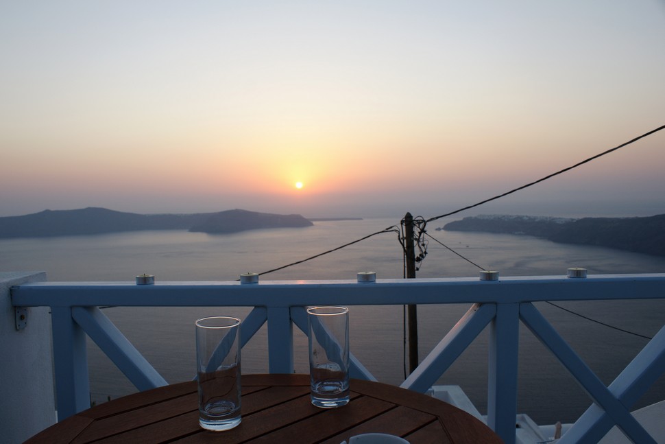 Unser Hotel Andromeda Villas hat eine grandiose Lage am Kraterrand und die Sonnenuntergänge auf der Terrasse sind super, aber bei den Appartements muß mann die teuren nehmen. Gebadet haben wir immer am Strand bei Vlichada, die Ausgrabungen bei Akrotiri sind geschlossen, aber auf dem Weg dahin gibt es schöne Aussichtspunkte und Tavernen.