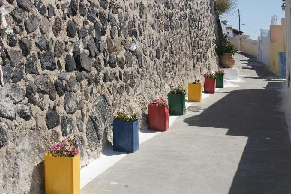 Unser Hotel Andromeda Villas hat eine grandiose Lage am Kraterrand und die Sonnenuntergänge auf der Terrasse sind super, aber bei den Appartements muß mann die teuren nehmen. Gebadet haben wir immer am Strand bei Vlichada, die Ausgrabungen bei Akrotiri sind geschlossen, aber auf dem Weg dahin gibt es schöne Aussichtspunkte und Tavernen.
