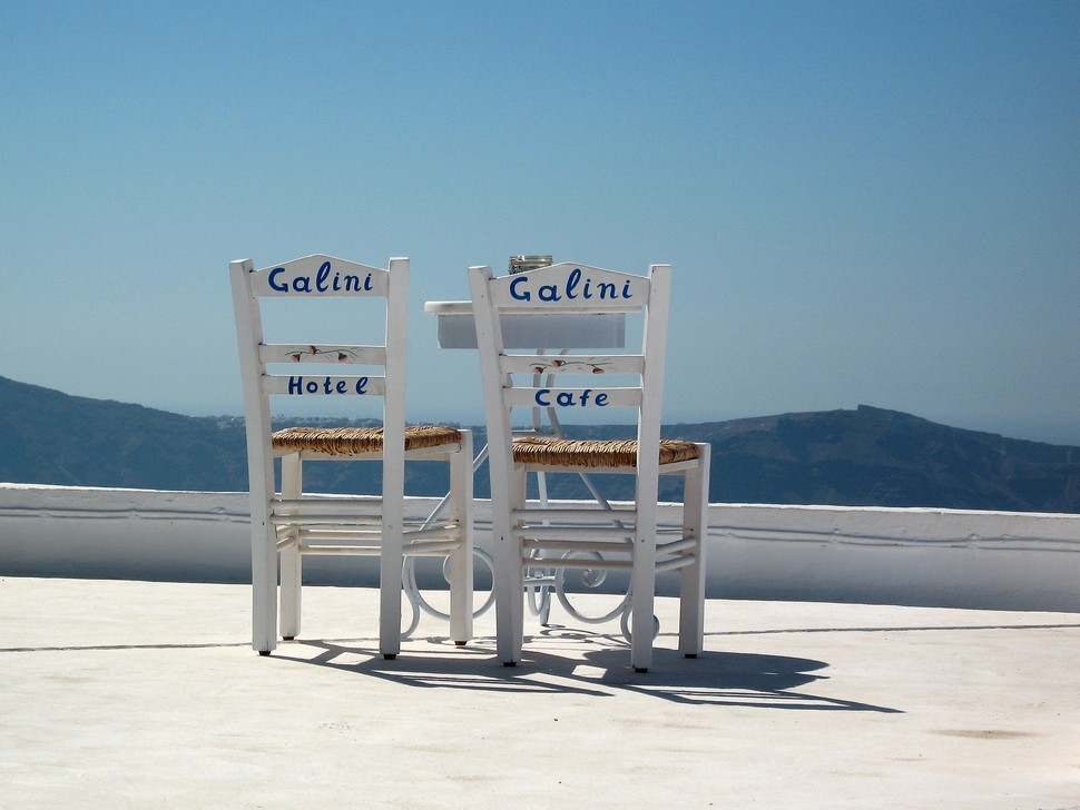 Unser Hotel Andromeda Villas hat eine grandiose Lage am Kraterrand und die Sonnenuntergänge auf der Terrasse sind super, aber bei den Appartements muß mann die teuren nehmen. Gebadet haben wir immer am Strand bei Vlichada, die Ausgrabungen bei Akrotiri sind geschlossen, aber auf dem Weg dahin gibt es schöne Aussichtspunkte und Tavernen.