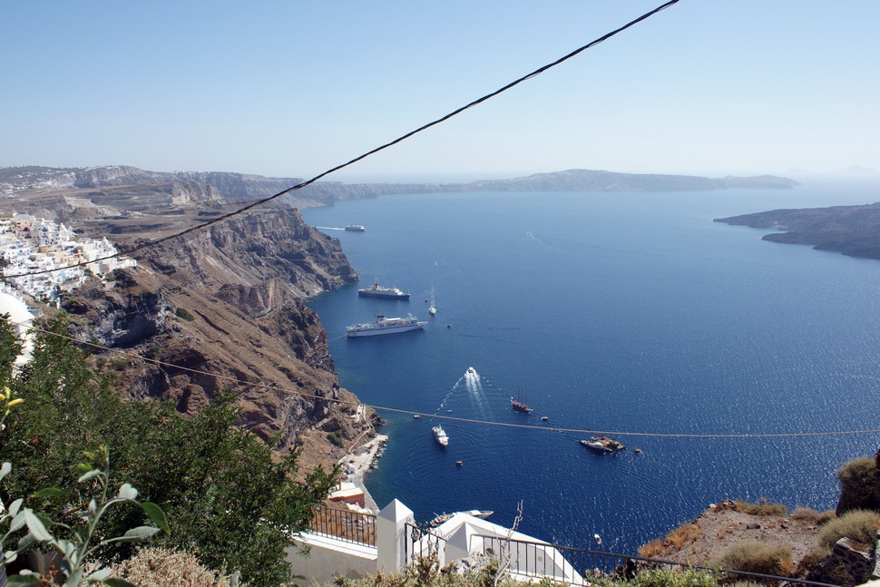Unser Hotel Andromeda Villas hat eine grandiose Lage am Kraterrand und die Sonnenuntergänge auf der Terrasse sind super, aber bei den Appartements muß mann die teuren nehmen. Gebadet haben wir immer am Strand bei Vlichada, die Ausgrabungen bei Akrotiri sind geschlossen, aber auf dem Weg dahin gibt es schöne Aussichtspunkte und Tavernen.
