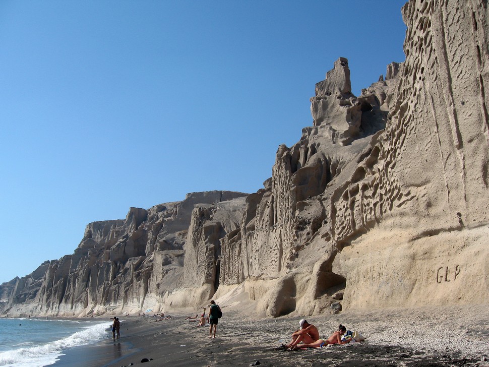 Unser Hotel Andromeda Villas hat eine grandiose Lage am Kraterrand und die Sonnenuntergänge auf der Terrasse sind super, aber bei den Appartements muß mann die teuren nehmen. Gebadet haben wir immer am Strand bei Vlichada, die Ausgrabungen bei Akrotiri sind geschlossen, aber auf dem Weg dahin gibt es schöne Aussichtspunkte und Tavernen.