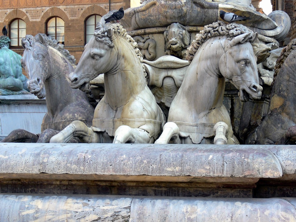 Wir lassen uns zum Piazzale Michelangelo führen, um denn herrlichen Ausblick auf die ganze Stadt zu genießen, ehe wir uns durch die Menschenmassen uber den Ponte Vecchio quälen. Wir kommen vorbei an den Uffizien, davor riesige Menschenschlangen, die Eintrittakarten kaufen wollen, weiter gehts zum Neptunbrunnen ehe wir dann an unserem Ziel, dem Dom, ankommen.