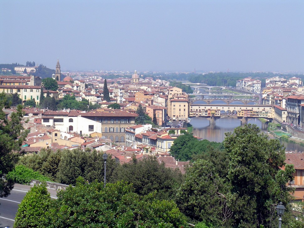Wir lassen uns zum Piazzale Michelangelo führen, um denn herrlichen Ausblick auf die ganze Stadt zu genießen, ehe wir uns durch die Menschenmassen uber den Ponte Vecchio quälen. Wir kommen vorbei an den Uffizien, davor riesige Menschenschlangen, die Eintrittakarten kaufen wollen, weiter gehts zum Neptunbrunnen ehe wir dann an unserem Ziel, dem Dom, ankommen.