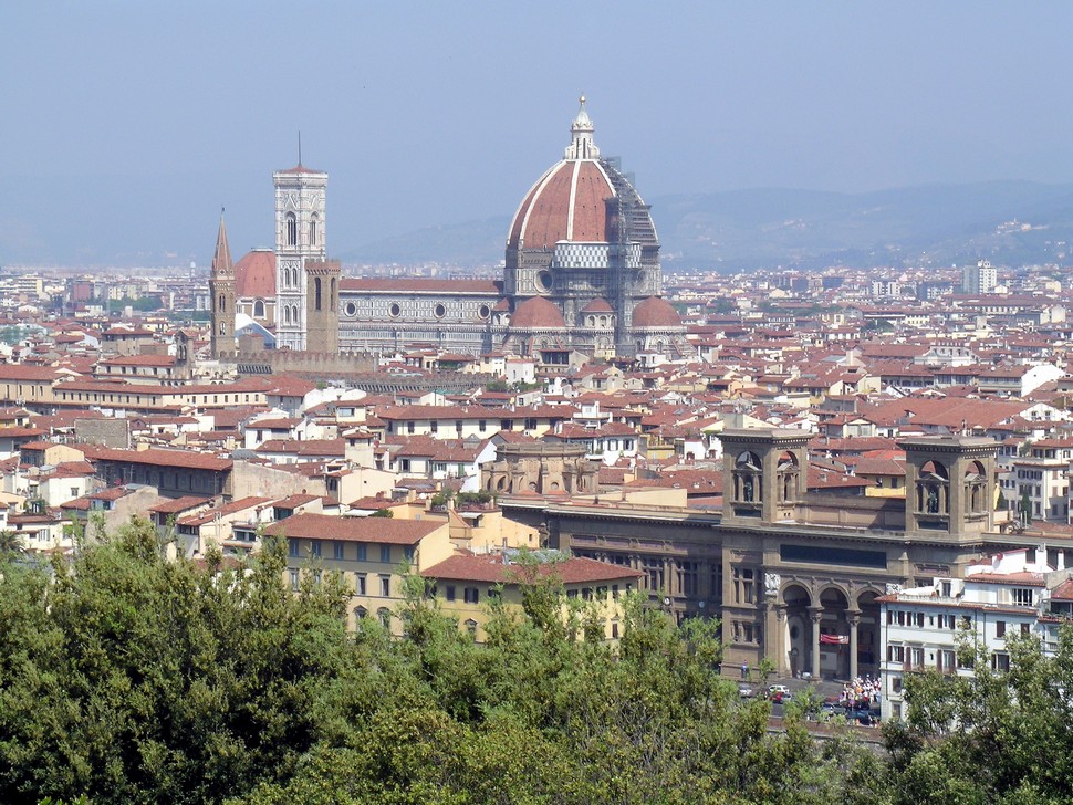 Wir lassen uns zum Piazzale Michelangelo führen, um denn herrlichen Ausblick auf die ganze Stadt zu genießen, ehe wir uns durch die Menschenmassen uber den Ponte Vecchio quälen. Wir kommen vorbei an den Uffizien, davor riesige Menschenschlangen, die Eintrittakarten kaufen wollen, weiter gehts zum Neptunbrunnen ehe wir dann an unserem Ziel, dem Dom, ankommen.
