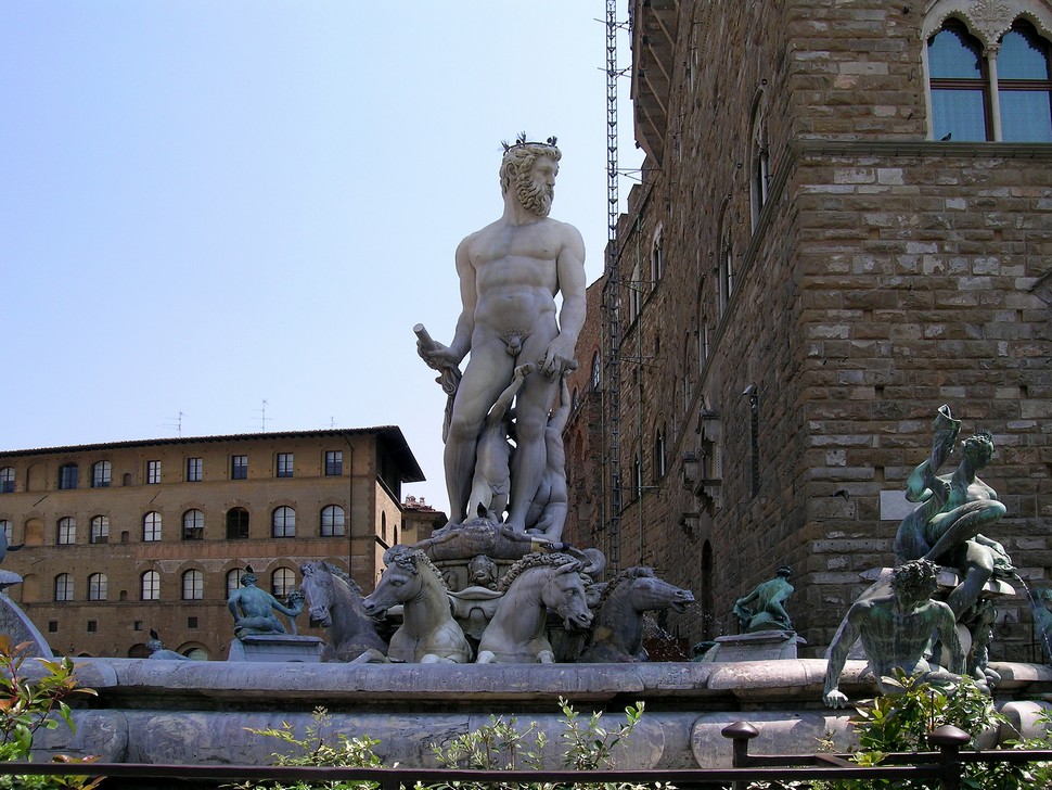 Wir lassen uns zum Piazzale Michelangelo führen, um denn herrlichen Ausblick auf die ganze Stadt zu genießen, ehe wir uns durch die Menschenmassen uber den Ponte Vecchio quälen. Wir kommen vorbei an den Uffizien, davor riesige Menschenschlangen, die Eintrittakarten kaufen wollen, weiter gehts zum Neptunbrunnen ehe wir dann an unserem Ziel, dem Dom, ankommen.