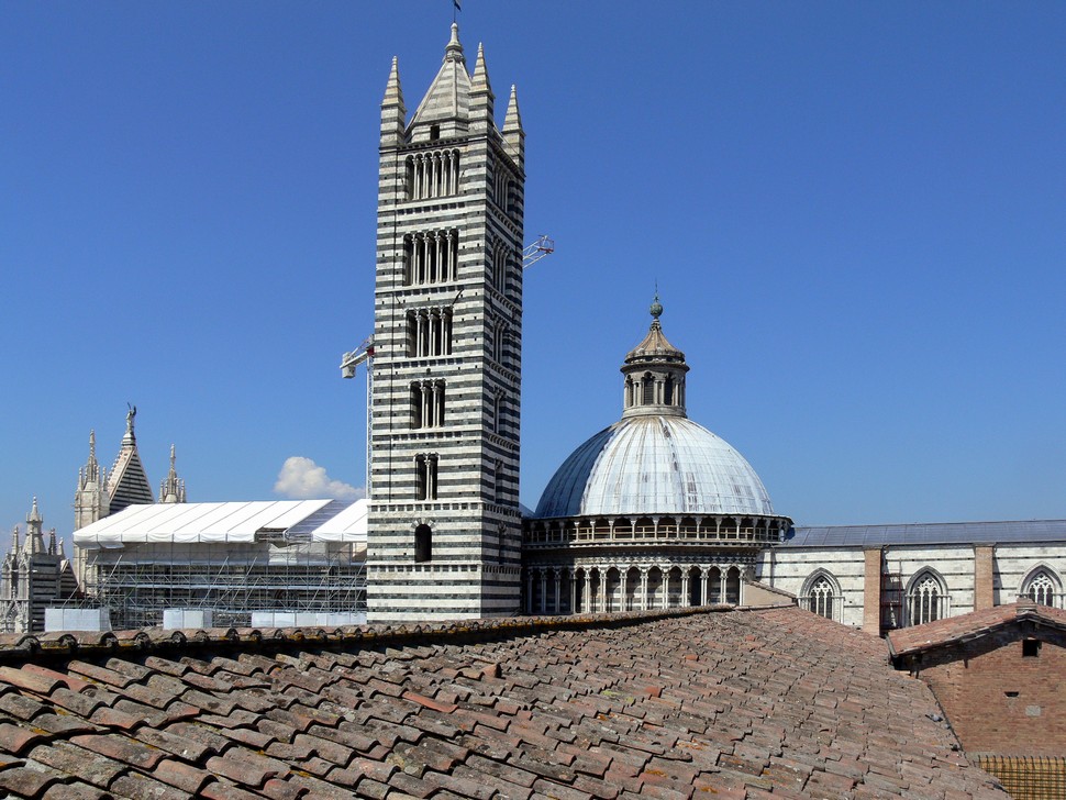 Von der Via Roma über die Plazza del Campo zum Dom, unser Spaziergang ging auch in schwindelnde Höhen, von wo wir aber einen fantastischen Blick über die Stadt bis hin zur Mondlanschaft Crete hatten. Der Dom Santa Maria Assunta thront über der Stadt und hat uns mit seiner Pracht gerade zu überwältigt.