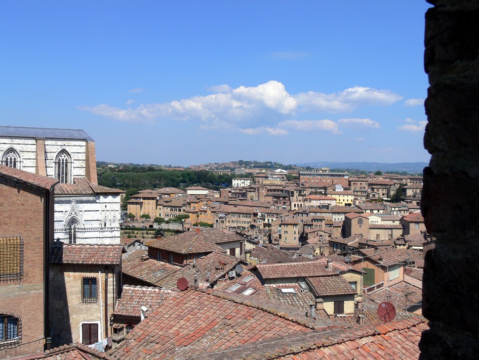 Von der Via Roma über die Plazza del Campo zum Dom, unser Spaziergang ging auch in schwindelnde Höhen, von wo wir aber einen fantastischen Blick über die Stadt bis hin zur Mondlanschaft Crete hatten. Der Dom Santa Maria Assunta thront über der Stadt und hat uns mit seiner Pracht gerade zu überwältigt.