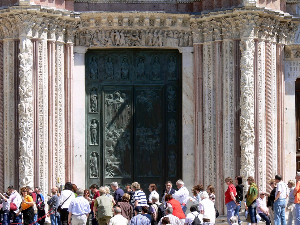 Von der Via Roma über die Plazza del Campo zum Dom, unser Spaziergang ging auch in schwindelnde Höhen, von wo wir aber einen fantastischen Blick über die Stadt bis hin zur Mondlanschaft Crete hatten. Der Dom Santa Maria Assunta thront über der Stadt und hat uns mit seiner Pracht gerade zu überwältigt.