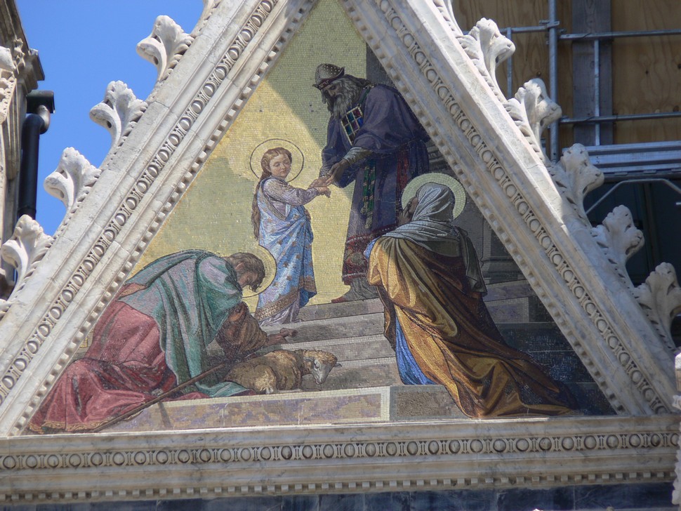 Von der Via Roma über die Plazza del Campo zum Dom, unser Spaziergang ging auch in schwindelnde Höhen, von wo wir aber einen fantastischen Blick über die Stadt bis hin zur Mondlanschaft Crete hatten. Der Dom Santa Maria Assunta thront über der Stadt und hat uns mit seiner Pracht gerade zu überwältigt.