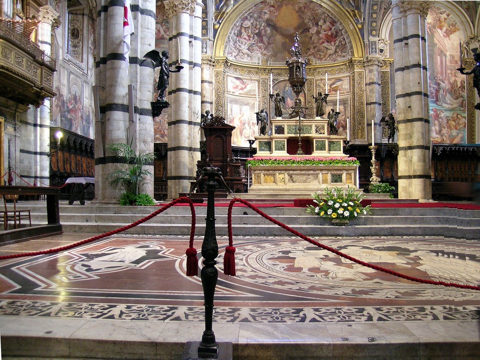 Von der Via Roma über die Plazza del Campo zum Dom, unser Spaziergang ging auch in schwindelnde Höhen, von wo wir aber einen fantastischen Blick über die Stadt bis hin zur Mondlanschaft Crete hatten. Der Dom Santa Maria Assunta thront über der Stadt und hat uns mit seiner Pracht gerade zu überwältigt.