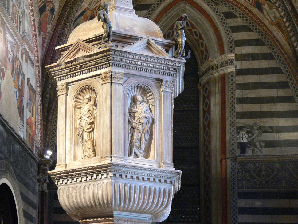 Von der Via Roma über die Plazza del Campo zum Dom, unser Spaziergang ging auch in schwindelnde Höhen, von wo wir aber einen fantastischen Blick über die Stadt bis hin zur Mondlanschaft Crete hatten. Der Dom Santa Maria Assunta thront über der Stadt und hat uns mit seiner Pracht gerade zu überwältigt.