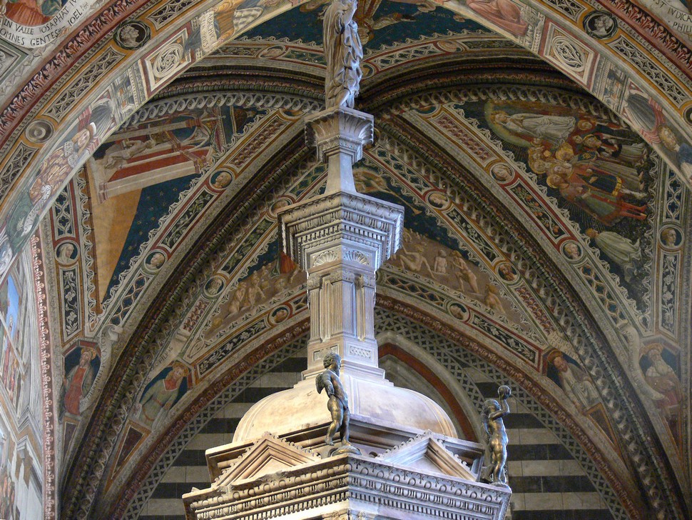 Von der Via Roma über die Plazza del Campo zum Dom, unser Spaziergang ging auch in schwindelnde Höhen, von wo wir aber einen fantastischen Blick über die Stadt bis hin zur Mondlanschaft Crete hatten. Der Dom Santa Maria Assunta thront über der Stadt und hat uns mit seiner Pracht gerade zu überwältigt.