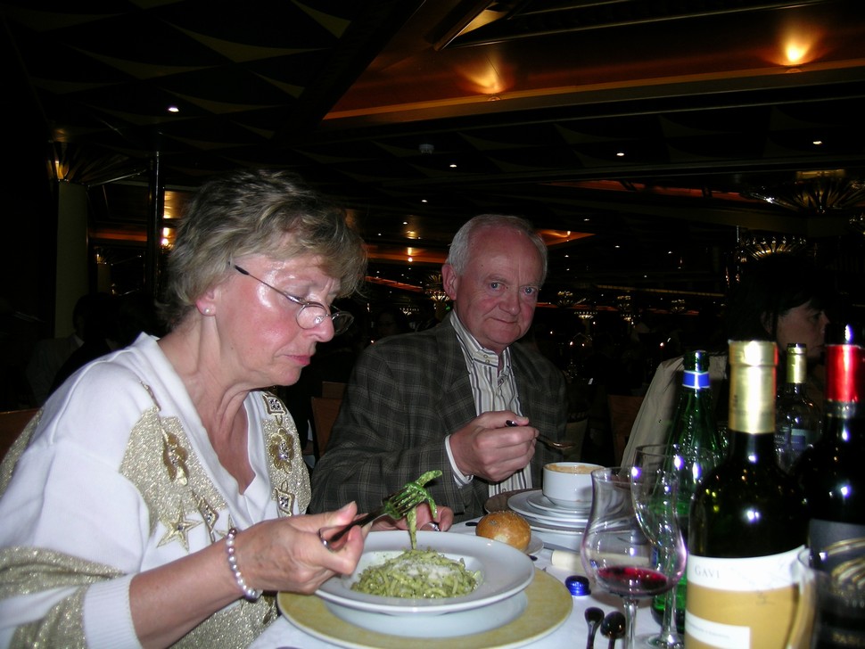 Unser Kreuzfahrtschiff diesmal die Costa Fortuna hat eine Länge von 273m und eine Breite von 36m. Sie besteht aus 17 Decks, davon sind 13 Gästedecks, und fährt maximal 24 Knoten. 3 große Bordrestaurants versorgen 3000 Passagiere. 11 Bars mit Livemusik, sowie Casino, Theater, Internetcafé und 1.300 qm Fitnessbereich lassen keine Langeweile aufkommen. Wir trafen in der Zigarren-und Cognac-Bar den Comandante Anelito Montesarchio und machten daraus gleich einen Fototermin.